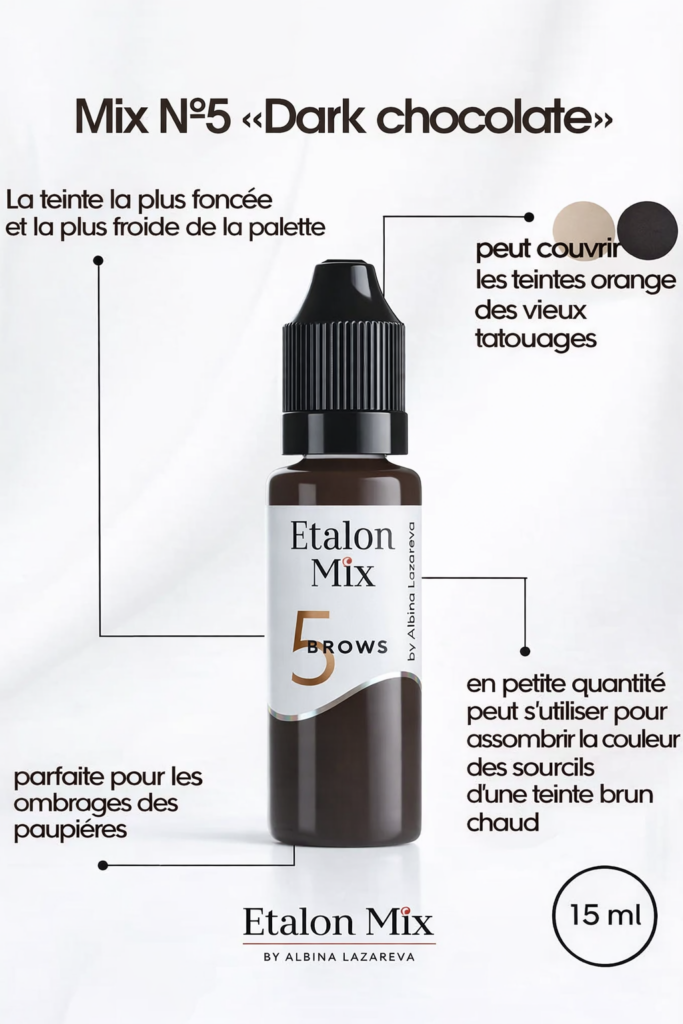 №5 Bitter Chocolate Le pigment Etalon Mix est destiné aux traitements de maquillage permanent des sourcils. Etalon Mix est reconnu dans le monde entier pour ses résultats parfaitement chauds après cicatrisation. Ces pigments sont stables dans le temps et faciles à implanter dans la peau. Tous les pigments Etalon Mix peuvent être mélangés entre eux. Les pigments Etalon Mix sont conformes à la réglementation REACH et ont été largement testés pour une utilisation en maquillage permanent.