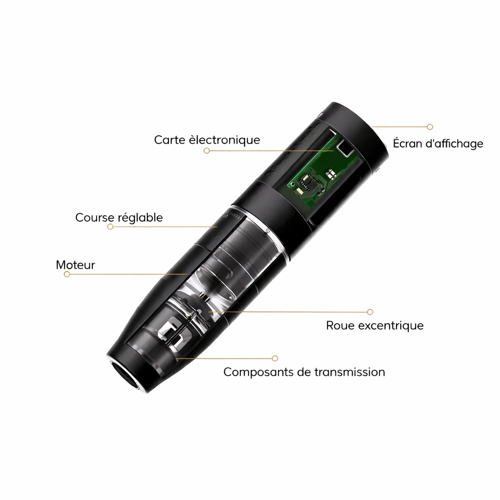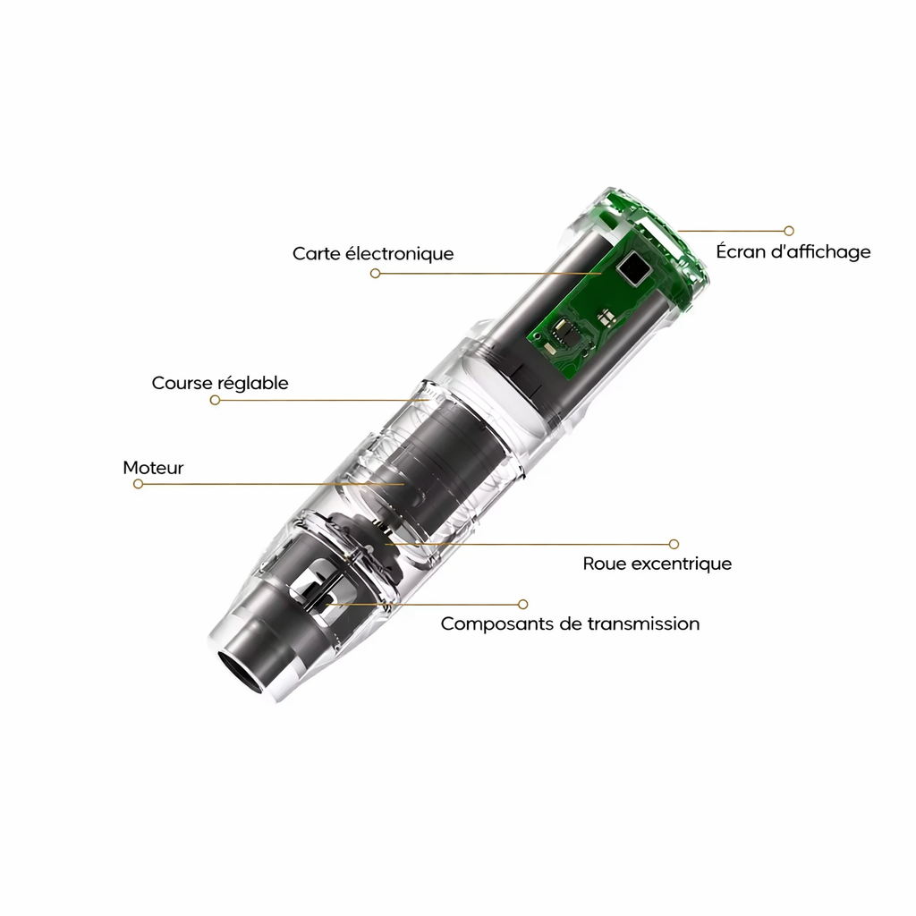 Cette machine PMU multifonctionnelle offre une longueur de course réglable de 2.2 mm à 4.2 mm, ce qui permet de travailler avec précision sur différentes techniques : hairstrokes, powderbrows, lèvres et eyeliner.