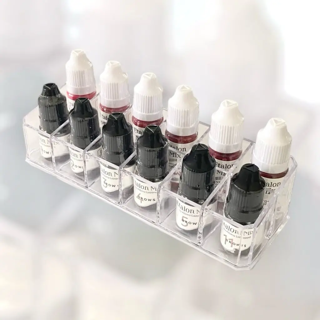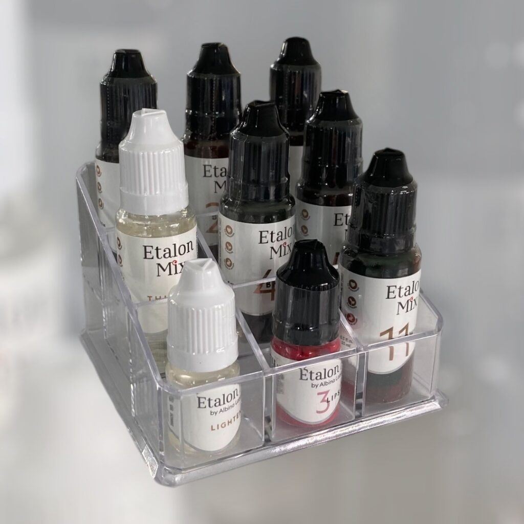 Ce display compact est conçu pour garder vos pigments bien rangés, visibles et facilement accessibles. Disponible en deux versions, il peut accueillir 9 ou 12 flacons, en format petit ou grand, ce qui le rend idéal pour chaque espace de travail en maquillage permanent. Son design épuré et minimaliste s’intègre parfaitement dans n’importe quel studio et apporte une présentation professionnelle et ordonnée de vos pigments.